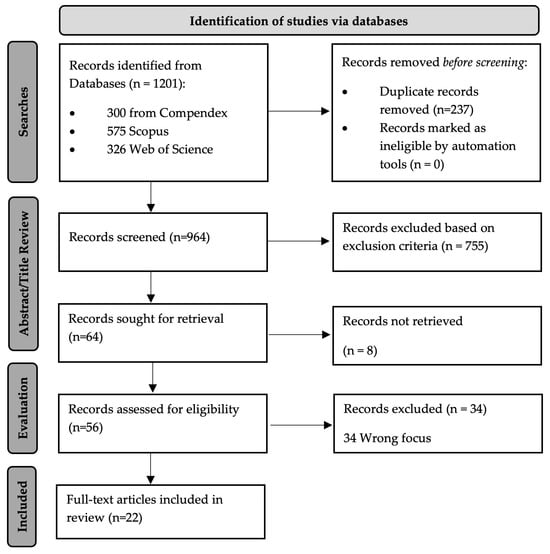Informed by the Preferred Reporting Items for Systematic Reviews (PRISMA) updated guidelines for reporting reviews [], this study conducts a comprehensive review to address the research question. This process offers a recognized methodology and a checklist to ensure the inclusion of all pertinent records. The review protocol consists of the search strategy, inclusion and exclusion criteria, data extraction, and analysis procedures, ensuring a thorough and dependable assessment of bus-stop shelter design considerations. By adhering to these guidelines, the study aims to provide a detailed understanding of how bus-stop shelters can enhance passenger comfort and protection while contributing to the overall quality and efficiency of public transportation infrastructure.