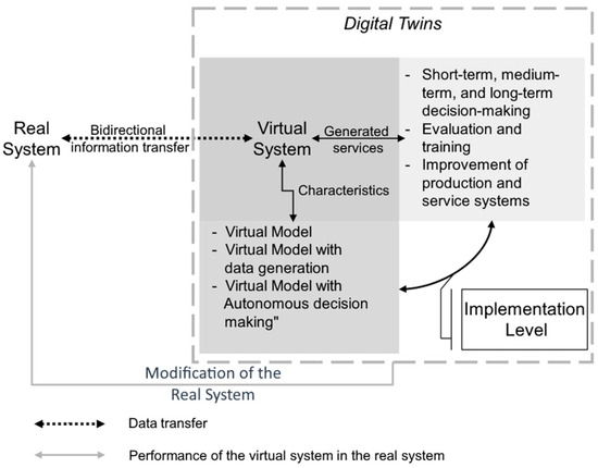 Figure 1, which highlights the characteristics, levels of implementation, and the feedback flow between the physical and virtual systems.