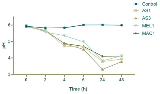 2.5.1. Tolerance to Acidic Conditions and Low Temperatures
