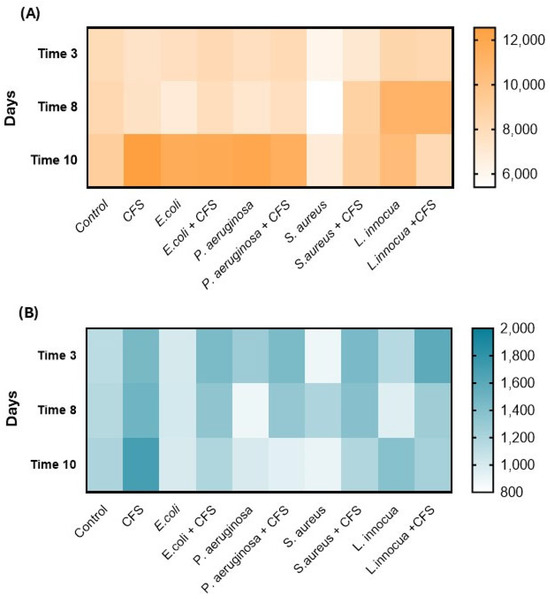 | S. aureus+CFS | 10 | 45.50 ± 1.35c | −3.12 ± 0.22a | 24.82 ± 1.45b | 2.62 ± 0.60abc |