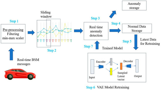 - Step 1: Incoming messages are filtered in the preprocessing stage to retain only the essential features (position, speed, and acceleration), then normalized to the range [0, 1] using MinMaxScaler. This normalization process helps stabilize training and enhances model performance [27].
