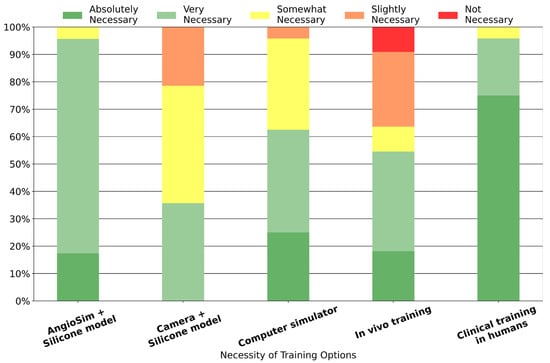 Physicians’ ratings on the necessity of different options for neurointerventional training. Responses are categorized from “Absolutely Necessary” to “Not Necessary”.