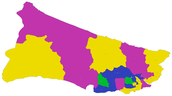 Therefore, the classification given in Table 4 has been accepted. All districts in the clusters are also shown on the district map of the European side of Istanbul in Figure 4.