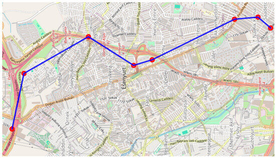 Final route: [911, 882, 239, 110, 127, 482, 175, 228] with an average total travel distance of 9.38 km (±0 standard deviation). To mitigate the traffic congestion commonly experienced along Doğan Araslı Boulevard, the current route was designed to incorporate an alternative path. While it remains feasible to traverse Doğan Araslı Boulevard, its propensity for congestion introduces significant delays, rendering it less desirable. Consequently, despite a slight increase in distance, this alternative route was selected for its smoother traffic flow, ensuring uninterrupted and timely travel for the vehicle.