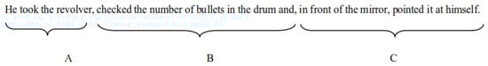 Microfiction follows a structured sequence consisting of opening, development, and closing. Each action transitions from one state to another—from point A to point C, passing through B—to form a cohesive narrative unit (see Figure 1).