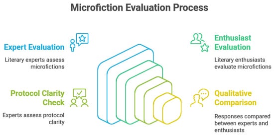 A review of current methods for evaluating automatically generated fiction [9] reveals that literary criteria are seldom considered. In particular, the concept of reception [10,11] plays a crucial role. As the above studies indicate, the reception of literary texts is significantly influenced by readers’ experiences and literary expertise. Consequently, an evaluation framework grounded in literary theory is essential for effectively comparing human-authored texts with those produced by generative models.