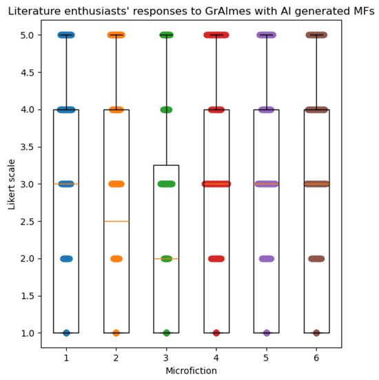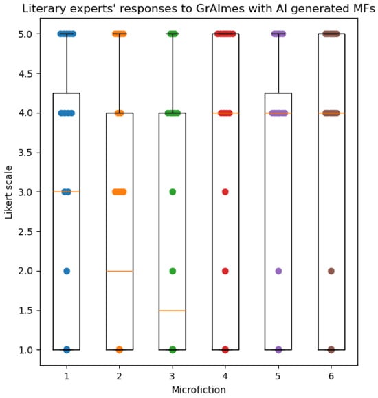 To summarize, this paper introduces GrAImes, a novel evaluation protocol specifically designed for assessing the literary value of microfiction. The protocol’s development involved an initial validation phase in which literary experts assessed human-written microfiction. Subsequently, GrAImes was applied to AI-generated microfiction, with evaluations conducted by both literary experts and literature enthusiasts. The cumulative results of these experiments position GrAImes as a valuable tool for aiding the validation process of microfiction.
