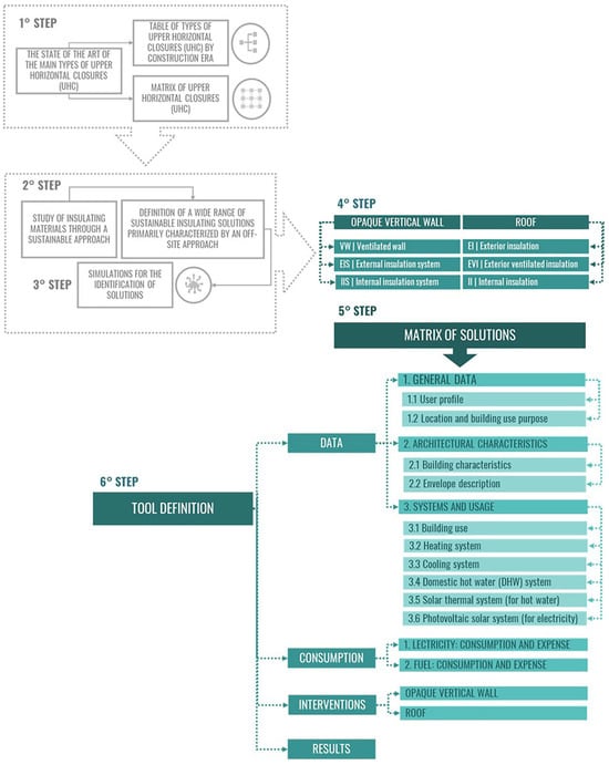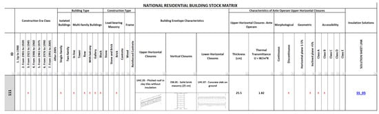 - Step 5—Matrix of solutions: This step involves creating a matrix that organizes and presents the available solutions for building envelope insulation, based on the choices made in Step 4. The matrix serves as a decision-making tool, guiding the selection of the most appropriate solutions for each building’s specific needs.