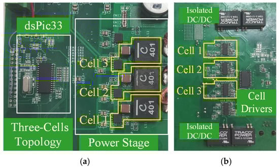 Experimental prototype PCB: (a) The top view of the power stage that includes a microcontroller, one dual N-Channel MOSFET per cell, power inductors, and flying capacitors. (b) The bottom view that includes a buffer, drivers, and isolated DC/DC supplies.