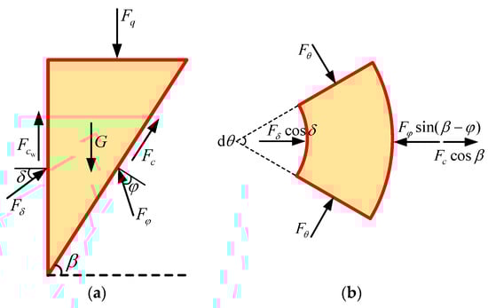 2.2. Establishment of the Equilibrium Equation and Determination of the Sliding Surface Inclination Angle