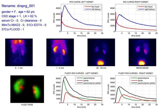 Visualizations of one renal scan for a patient from dynamic renal scintigraphy study database [].