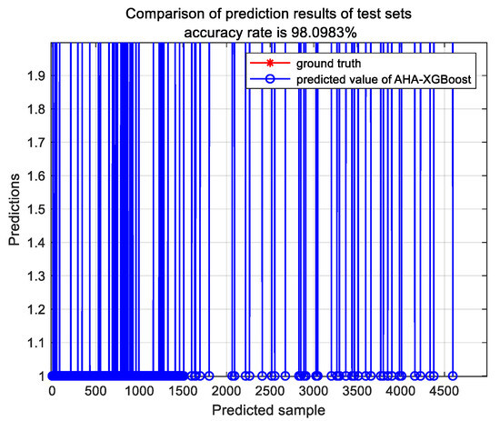 - Lightweight integrated modeling: Combining the parallel computing advantages of XGBoost and regularization strategies, a low-complexity and high-explanatory fault classification model is constructed. Through AHA synchronous optimization of XGBoost’s hyperparameters (such as learning rate and tree depth), the detection accuracy and real-time performance are significantly improved.