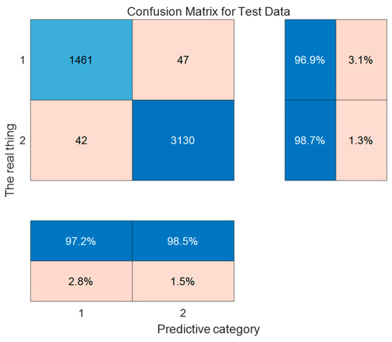 During the model training process, the prediction result curve of the test set is shown in Figure 9, and the accuracy rate of the verification set is 98.0983%. In the training process, there is no overfitting phenomenon, and the training results are good. Figure 10 shows the confusion matrix of the output model proposed in this paper. It can be seen that the recognition accuracy of samples in normal state of each type of load is high.
