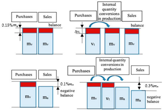 All measuring instruments correspond to the modern, improved-accuracy equipment held by a typical medium-sized fuel processing company today. For further analysis, we assume that all measuring instruments have been verified or calibrated. Their calibration results (systematic error plus uncertainty) comply with the ISO 17025 [40] standard’s decision rule, meaning they fall within the permissible error limits specified in Table 2 and Table 3.