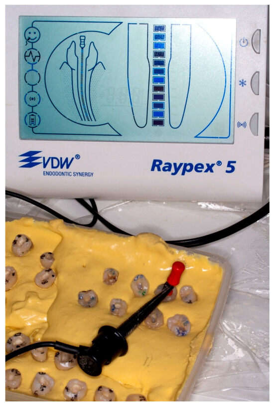 - Altenburger, M.J.; Tchorz, J.P.; Somma, F. In vivo accuracy of three electronic root canal length measurement devices: Dentaport ZX, Raypex 5 and ProPex II. Int. Endod. J. 2012, 45, 1053–1054. [Google Scholar] [CrossRef] [PubMed]
