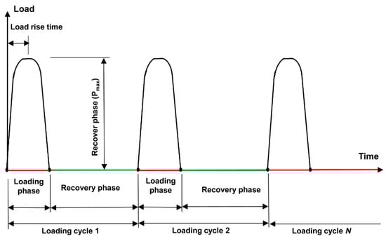 Viscous behaviour consists of the creeping and relaxation behaviour of the articular cartilage. The changes in stress during the application of a constant strain are called relaxation behaviour, during which there is a gradual adaptation of the reaction force at the point of contact with a simultaneous forced constant displacement. Creep behaviour, during which the shape of a specimen subjected to a constant force gradually adapts, is responsible for the changes in deformation during the application of a constant stress. Two sources of viscous behaviour are known: flow-dependent or porous-elastic []. They are related to the porous structure of the articular cartilage and the flow of viscous fluid from the pores contained in the solid phase. As this flow is not instantaneous, resistance forces are induced, increasing the overall reaction force of the tissue. Viscoelastic behaviour and flow-independent viscous behaviour are related to ECM viscosity. COL II fibrils and proteoglycans sliding against each other create friction, which increases the strength of the tissue response []. Therefore, during the transitional phase of creep or relaxation, some of the energy required for tissue deformation is lost due to the viscous behaviour of the solid and liquid phases []. In contrast, the deformation of the specimen increases or the delivered force decreases.