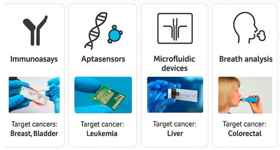 A representative sample of the most common POCT technologies used for cancer and/or chronic disease screening is graphically presented in Figure 1.