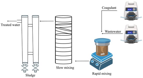 Experimental setup used to perform coagulation–flocculation–sedimentation assays in continuous mode.