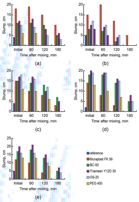 - Runova, R.F.; Kochevyh, M.O.; Rudenko, I.I. On the Slump Loss Problem of Superplasticized Concrete Mixes. In Proceedings of the Admixtures—Enhancing Concrete Performance, Scotland, UK, 6 July 2005; pp. 149–156. [Google Scholar]