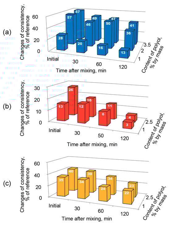 - With the increase of the degree of dispersing of the alkali-activated cement suspensions in the transition from heavyweight concretes to building mortars and further to lightened grouts, polyester-based plasticizers were to be substituted for polyols, that is, the role of the molecular weight decreased. This could be attributed to the higher contents of the liquid phase, which added a plasticizing effect.