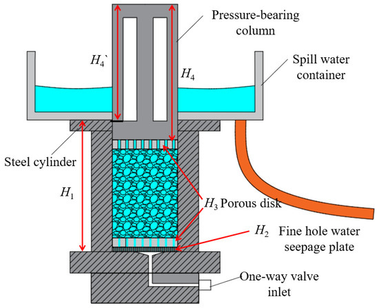 The experimental system used in the broken rock compaction–seepage test is shown in Figure 4. The compaction–seepage experimental device is shown in Figure 5.