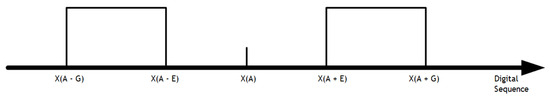 The indices of the samples in Figure 3, taking A as the center of the window, that is, ( to ) in the left window and ( to ) in the right window, are Note that when index i is close to the beginning or near the end of the data support, the corresponding window is truncated at the boundaries of the sequence. The local average of the elements inside the two windows is