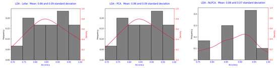 LDA hyperparameters and the model’s performance for the Lofar, PCA, and NLPCA variations of the database.