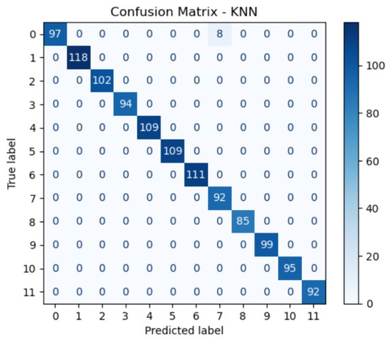 The hyperparameters that best fit the XGBoost model were found, and the classification results are presented in Table 11. Subsequently, the machine was trained and tested on a separate dataset, which yielded the results shown in Figure 7.