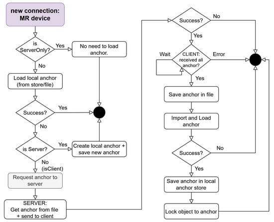 A brief description of the algorithm designed to perform the synchronization and sharing of anchors between HoloLens 2 devices is presented in the following paragraphs and is depicted in the flow diagram in Figure 4.