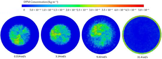 Based on these findings, this study selects a rotation speed of 0.314 rad/s to achieve a balance between deposition efficiency and spot uniformity. At this speed, both the concentration distribution and uniformity of deposition spots are well maintained.