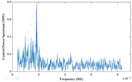 Perform the DFT on to obtain the corresponding frequency domain signal. According to Parseval’s Theorem, the total energy of the signal in the frequency domain is equal to its total energy in the time domain []. Based on this theorem, the system’s regulation capacity for smoothing wind and PV power can be calculated as follows: