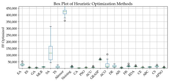 It was decided to compile an expanded list of heuristic methods to gain a more comprehensive understanding of the topic addressed in this paper. This list was constructed by combining the heuristic methods referenced in the literature review presented in Section 2 with selected methods from the PRISMA systematic review approach described in Section 2.5. Since the global optimization methods applied to thermal models during the reduction and correlation process are often difficult to understand or differentiate, given that many papers do not clearly explain their underlying mechanisms, some methods were excluded. Specifically, the Bayesian Algorithm, Conductance Matrix Fitting, and Jacobian Propagation were omitted. In addition, the machine learning approach was excluded because it is not strictly considered a heuristic method. Furthermore, certain methods exhibit similarities (e.g., Gradient-based Algorithms and simulated annealing []) and therefore simulated annealing is considered instead.