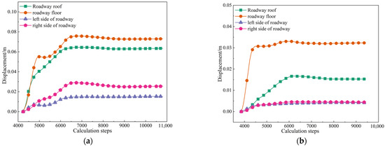 Displacement monitoring curve diagram: (a) old support displacement monitoring curve; (b) optimized support displacement monitoring curve.