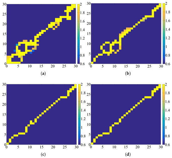 Under the condition of the same grid map, the setting parameters are as follows: , , , , , , , and . When the parameters were varied as , , , ⋯, and , the experimental simulation results of the EACI were recorded, as presented in Figure 12.