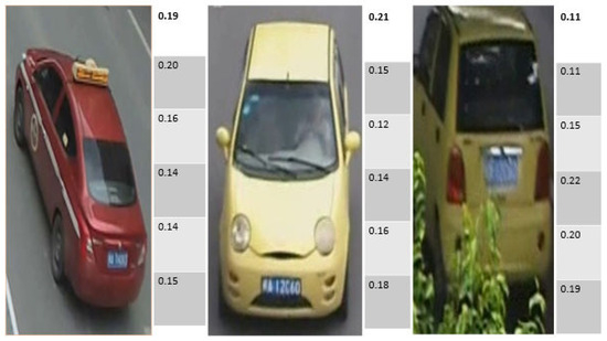 - The models proposed in [51,52], which outperform our model in Rank-1 and Rank-5 accuracies on the VeRi dataset, fail to do so on the VehicleId dataset. Similarly, the models proposed in [35,48] perform better in Rank-1 accuracy, but in Rank-5 accuracy on the VeRi dataset, our method performs better. Thus, considering its low complexity and consistent performance, our approach offers a better trade-off than attention-based models with higher complexity.