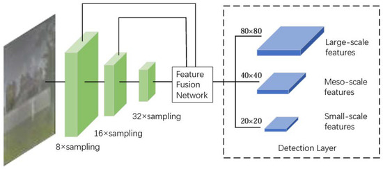 In the original YOLOv8 model, the network will calculate three feature maps of different scales. These three feature maps will be used to predict targets of different sizes in the image.