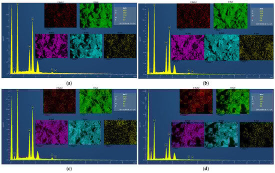 EDS analysis results: (a) 0 h, (b) 8 h, (c) 16 h, (d) 24 h.