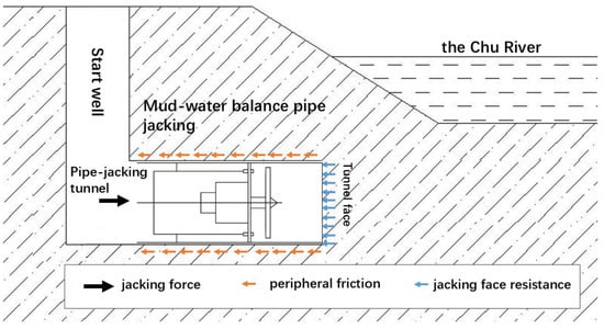 The support pressure at the tunnel face during mud–water-balanced pipe jacking is an important construction control parameter. If the support pressure is not set properly, it can cause stratum displacement or tunnel-face collapse, which causes high safety hazards in the pipe-jacking process. In this study, the support pressure on the tunnel face during pipe jacking under the conditions of a thin overburden, mud–water balance, and construction crossing a river channel was examined in depth, and the performed analyses allowed the formulation of general conclusions: