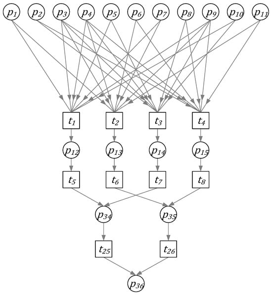 - I: P × T → {0, 1} is an n × m input matrix, that is, iij records whether a directed arc exists from pi to tj (i = 1, 2, …, n; j = 1, 2, …, m), where