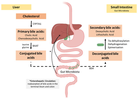 - Ramirez-Perez, O.; Cruz-Ramon, V.; Chinchilla-Lopez, P.; Mendez-Sanchez, N. The role of the gut microbiota in bile acid metabolism. Ann. Hepatol. 2017, 16 (Suppl. S1), S21–S26. [Google Scholar] [CrossRef] [PubMed]