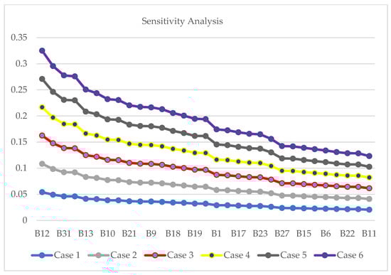 Figure 2. As seen from the results, the expert weightings had little effect on the final outcomes. Even in Case 6, where the expert weight ratios were completely reversed, the results did not change significantly. This highlights an important point regarding the reliability of the evaluation.