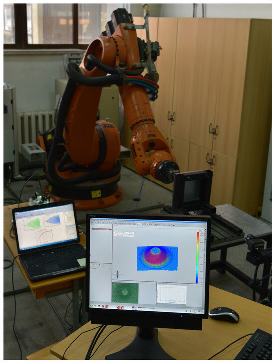 The experimental research was carried out using the Kuka KR210-2 robot (Kuka, Augsburg, Germany), which has the advantage of allowing for the measurement of the strains in the process throughout the entire stroke of the punch.