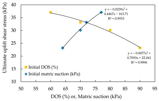 Ultimate uplift shear stress versus the initial degree of saturation and initial degree of saturation.