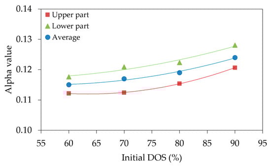 Relationship between the α value and initial degree of saturation.4.3. Calculation of β Value.
