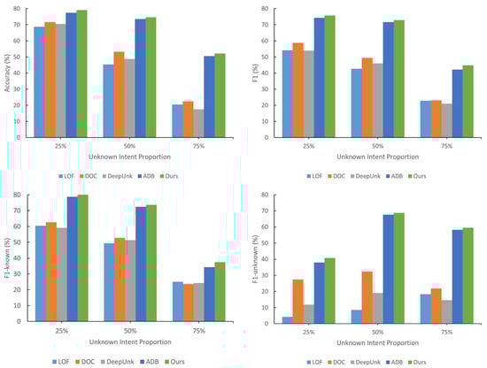 - Yan, G.F.; Fan, L.; Li, Q.M.; Liu, H.; Zhang, X.T.; Wu, X.M.; Lam, A.Y.S. Unknown Intent Detection Using Gaussian Mixture Model with an Application to Zero-shot Intent Classification. In Proceedings of the 58th Annual Meeting of the Association-for-Computational-Linguistics (ACL), Virtual Conference, 5–10 July 2020; pp. 1050–1060. [Google Scholar]