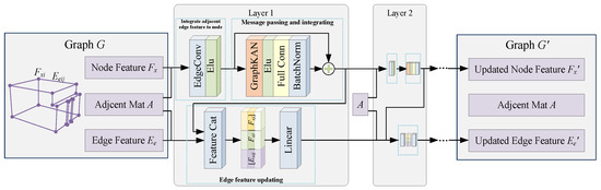 Inspired by the work of Zhou et al. [52], we adopt a novel feature update method that can simultaneously aggregate neighbor node information and multidimensional edge features to the central node. After the node feature update is completed, the updated node features are concatenated with the edge features to update the edge feature information. In each layer, node features not only aggregate part of the initial features but also integrate features from the previous layer, effectively avoiding the problem of feature oversmoothing. This method has three significant characteristics: