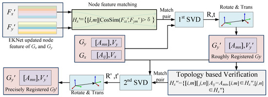 In the current research, the methodologies for point cloud registration and map registration exhibit significant similarities, particularly with regards to deep learning-based approaches and point correspondence techniques, which are widely employed and hold substantial reference value [7,8,9,10,11,12]. The primary objective of point cloud registration is to align disparate point clouds into a unified coordinate system [13]. Similarly, graph structure registration aims to align multiple frames of graph structure data within the same coordinate system, ensuring consistent spatial positions and orientations. This process typically entails the computation of a rotation matrix and a translation matrix to achieve optimal alignment among multiple partially overlapping images. In recent years, advancements in point cloud neural network feature extraction technology and differentiable optimization techniques have progressed rapidly. Consequently, the compressed processing method for point cloud registration has emerged as a focal point of research, driven by the constraints of communication conditions and the increasing demands for processing speed and data volume [14].