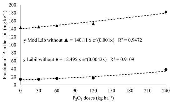 Soil phosphorus fractionation into labile phosphorus (Lab), moderately labile phosphorus (Mod Lab), non-labile phosphorus (N Lab), inorganic phosphorus (Pi), organic phosphorus (Po), and total phosphorus (P tot) was performed according to the methodology proposed by [], with adaptations. Analyses were conducted at the Soil Chemistry Analysis Laboratory of the “Luiz de Queiroz” College of Agriculture, University of São Paulo (ESALQ/USP—Piracicaba/SP).