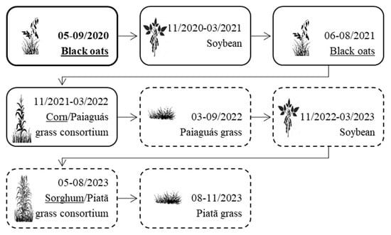 The experimental area has a history of annual crop cultivation under no-tillage (NT) for 20 years. Before the current study, the following crops were grown in rotation (Scheme 2).