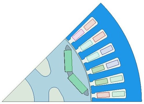 In this paper, the motor is simulated using Maxwell 16.0. The 1/8 finite element model of the motor is shown in Figure 5: The key parameters of the PMSM are listed in Table 1.